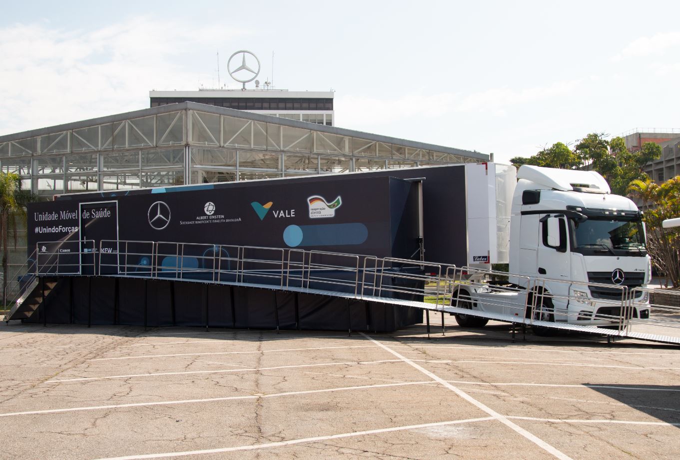 A ação, liderada pelo Einstein, com suporte da Mercedes-Benz, teve início em Itabira, MG, depois seguiu para a fábrica da Mercedes-Benz em São Bernardo do Campo, SP, para o atendimento aos caminhoneiros que circulam na entrega ou retirada de cargas na empresa.