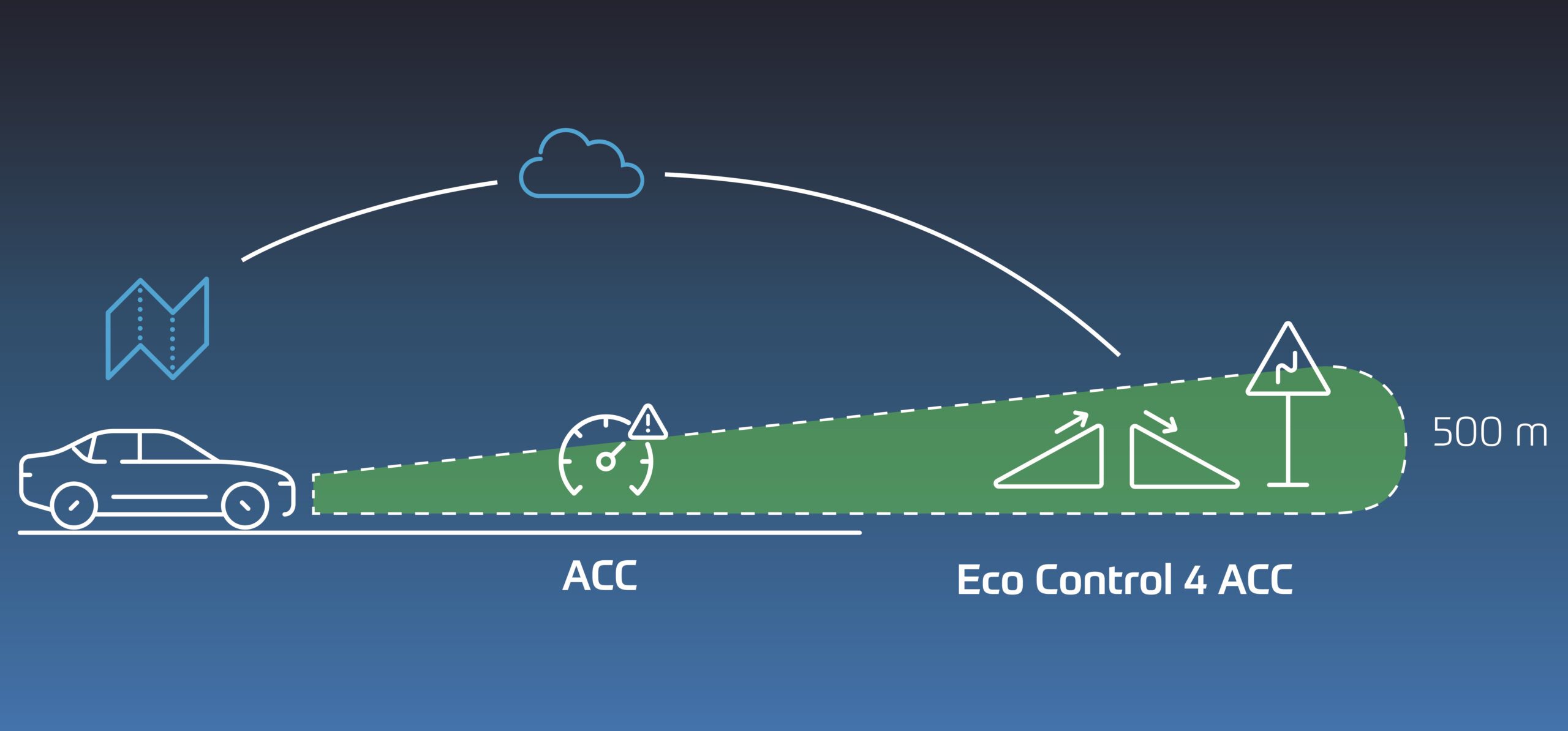 Testes de campo realizados pela ZF mostraram que o Eco Control 4 ACC pode atingir um ganho de autonomia de até 8% no tráfego do mundo real. Como função adicional para ACCs de série, pode ser usado tanto em carros de passeio como em veículos comerciais, independentemente do tipo de trem-de-força.
