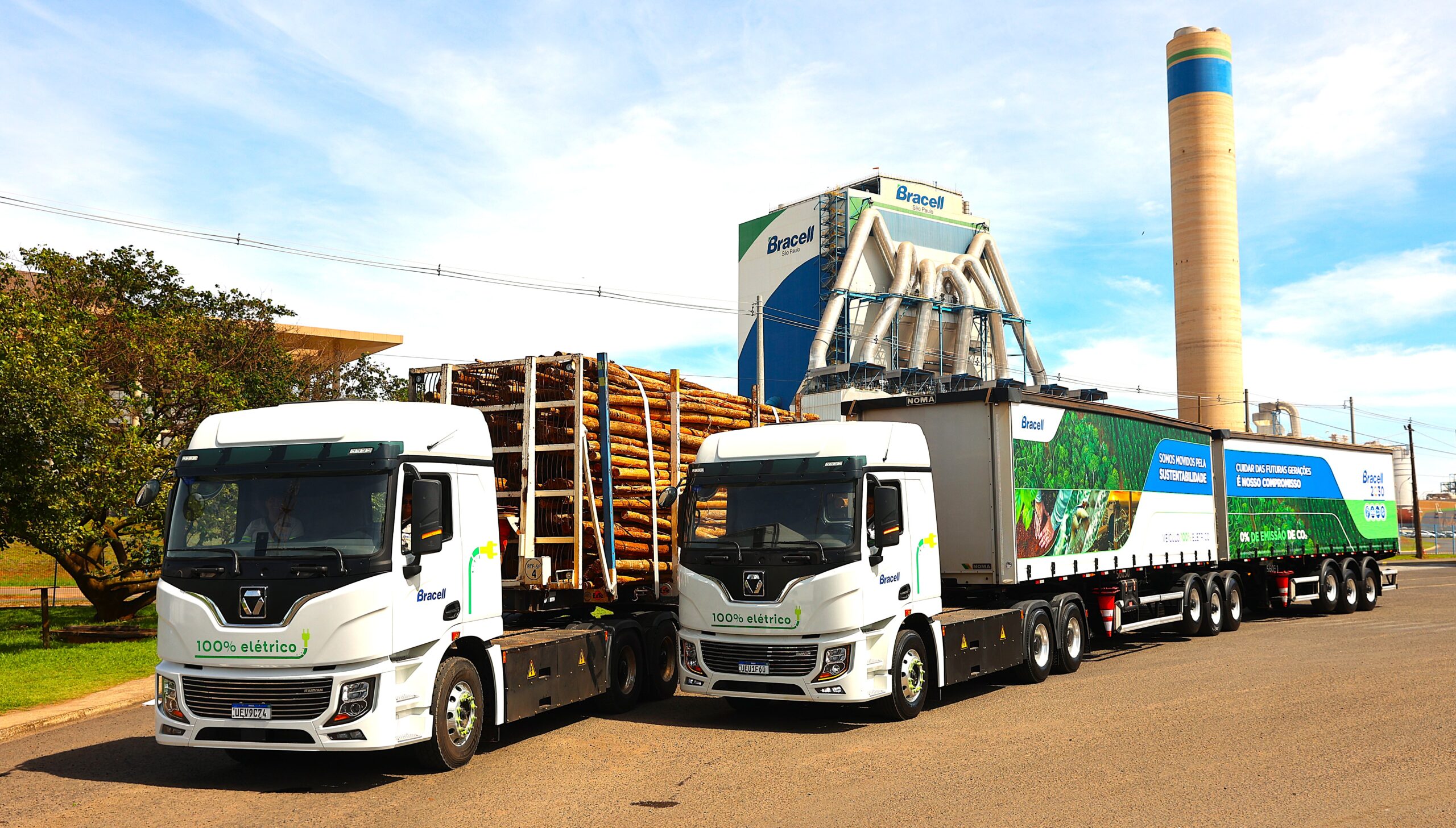 A Bracell, de Lençóis Paulista, SP, referência na produção de celulose solúvel e especial, investe na consolidação de uma logística de baixo carbono, com a compra de caminhões elétricos de 74 t de pbt. Os dois novos caminhões elétricos vão operar no transporte de madeira e celulose em larga escala.