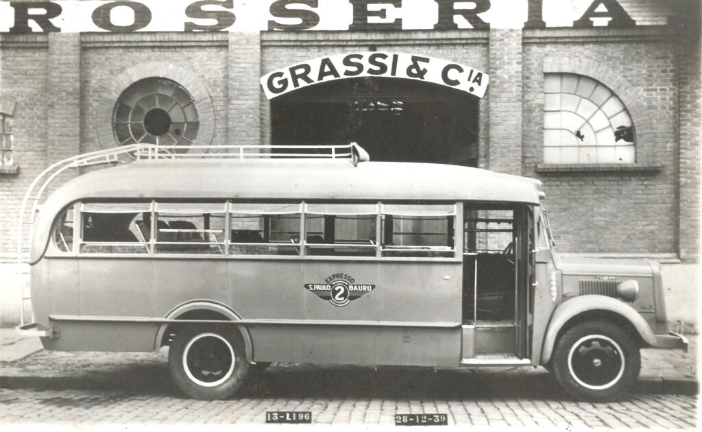A primeira grande encarroçadora brasileira, a paulista Grassi, foi referência na produção de ônibus no país por longos anos. Na foto a imagem da Viação São Paulo Bauru, no final da década de 1930
