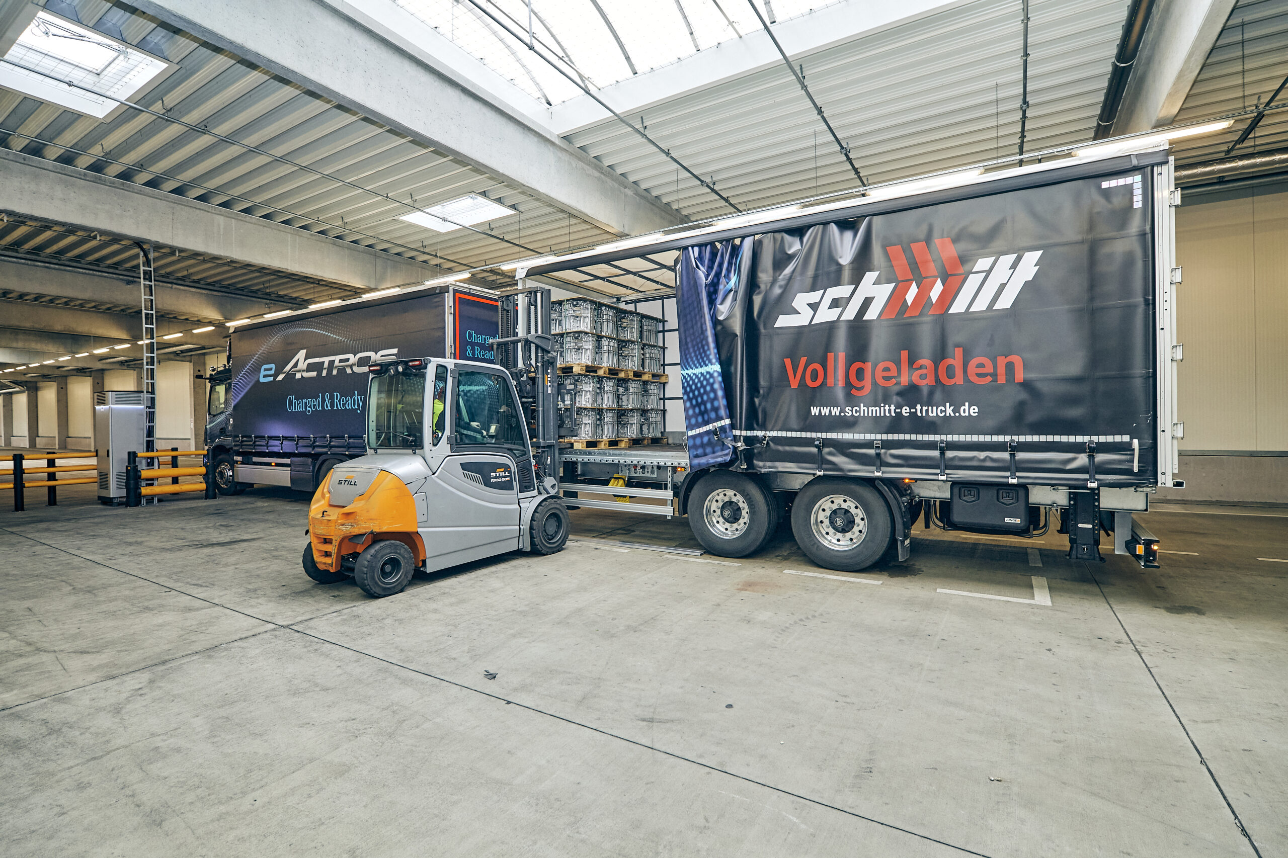 Rainer Schmitt, Sócio-Gerente da Logistik Schmitt aprovou: “O eActros como uma combinação de caminhão e reboque é ideal para nossos propósitos. O caminhão elétrico agora oferece não apenas um pbt maior, mas também um volume de transporte significativamente maior. Isso significa que podemos transportar o dobro do que outros transportes de carga nas mesmas viagens”. Os implementos sideres da Logistik Schmitt transportam autopeças, caixas de transmissão e componentes de eixos.