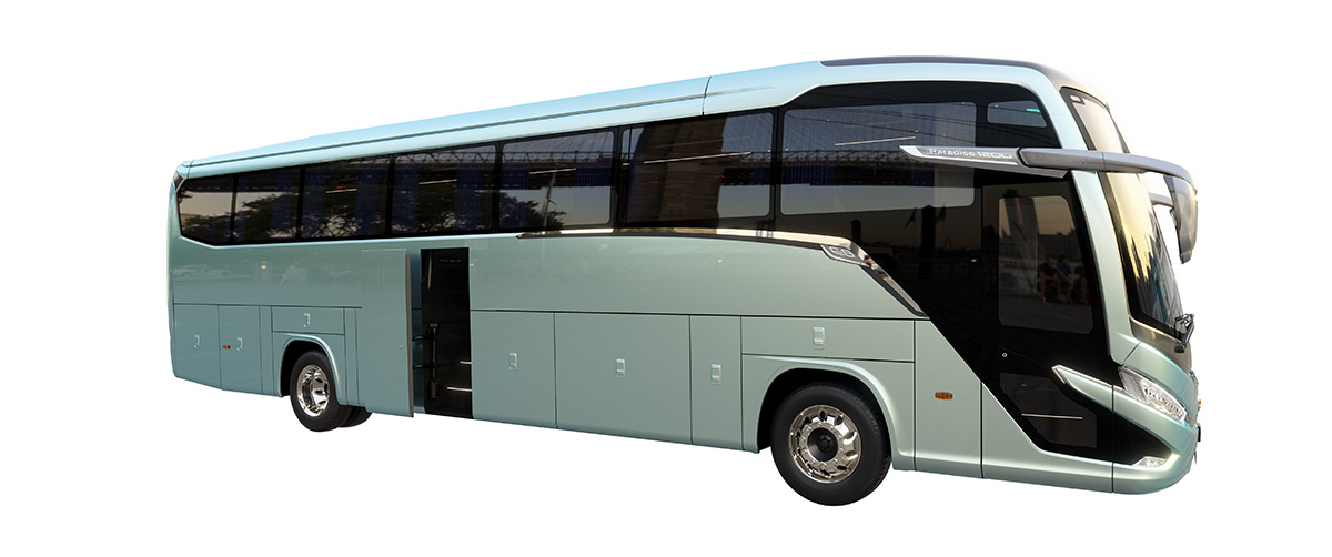 O modelo tem configuração com 13.500 mm de comprimento. O Paradiso G8 1200 que será na Busworld Europa 2025 tem capacidade para transportar 55 passageiros em assentos Confort AA com tomadas USB.