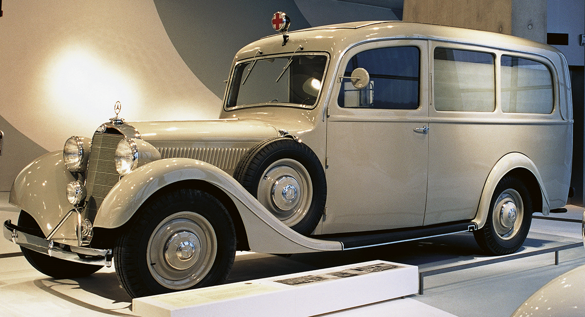 Mercedes-Benz 320 Ambulance – 1937 – Carro utilitário ambulância com motor de 6 cilindros, que desenvolvia 78 hp de potência. A velocidade máxima atingia 90 km/h. Produção de 1937 a 1942