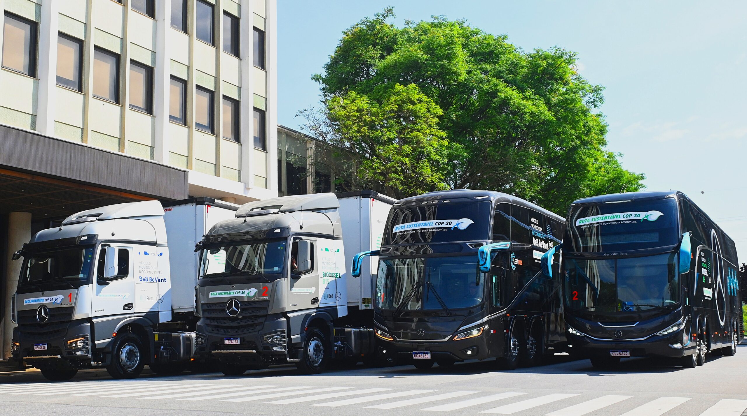 A Mercedes-Benz do Brasil e a Be8, produtora de biodiesel, iniciaram o teste no dia 21 de outubro, na viagem batizada de “Rota Sustentável COP 30”. O objetivo é, em caráter experimental, comparar os níveis de emissões de gases de efeito estufa dos motores Euro 6 que equipam o Actros Evolution 2553 6×2 e o ônibus O 500 RSD 6×2 abastecidos com o diesel comercial B15 e com o biocombustível Be8 BeVant.