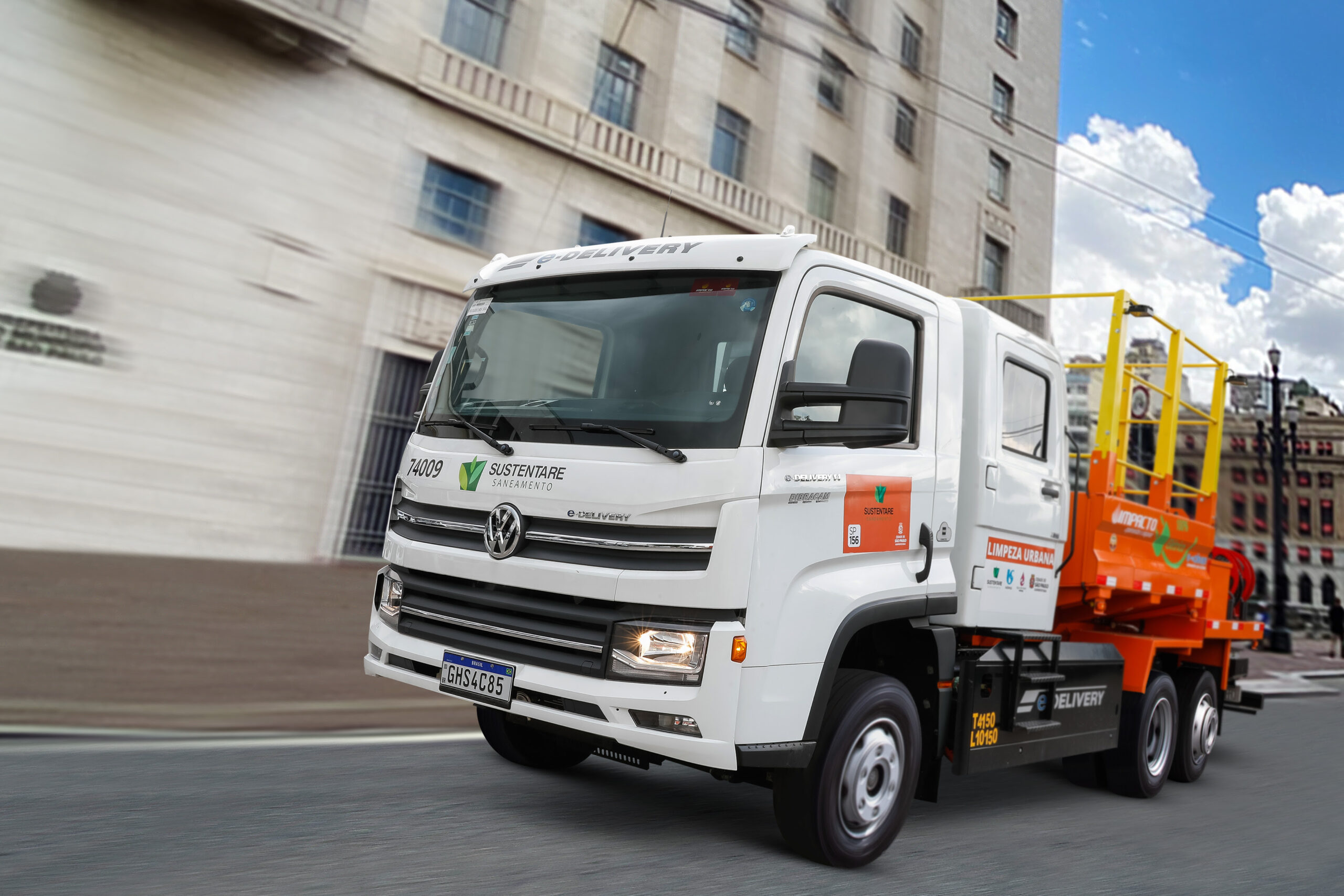A partir de agora, dois caminhões e-Delivery vão atuar nos serviços de conservação urbana sob responsabilidade da Sustentare, uma das maiores empresas brasileiras de limpeza pública. São os primeiros caminhões elétricos a operar na região nesse tipo de atividade. Tanto na coleta de resíduos como na manutenção de monumentos históricos.