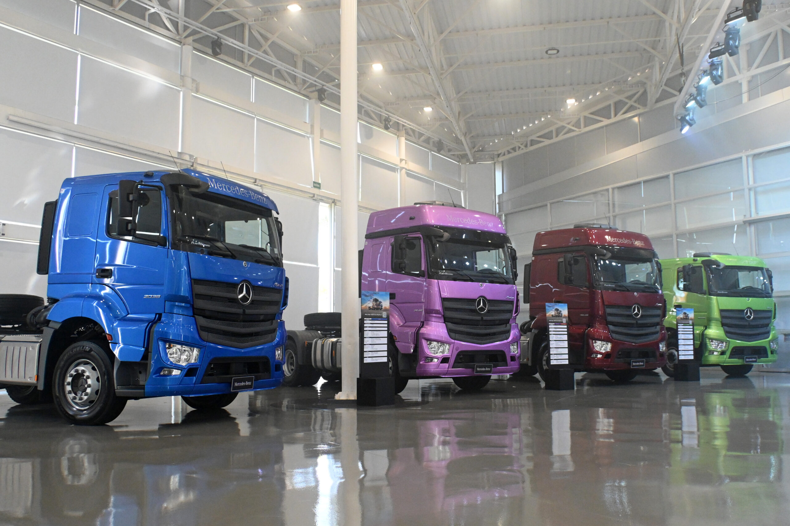 Os novos Axor 2038 4×2 e Axor 2545 6×2 integram a tecnologia BlueTec 6 e desenvolvem potências máximas de 380 cv e 450 cv, respectivamente.
