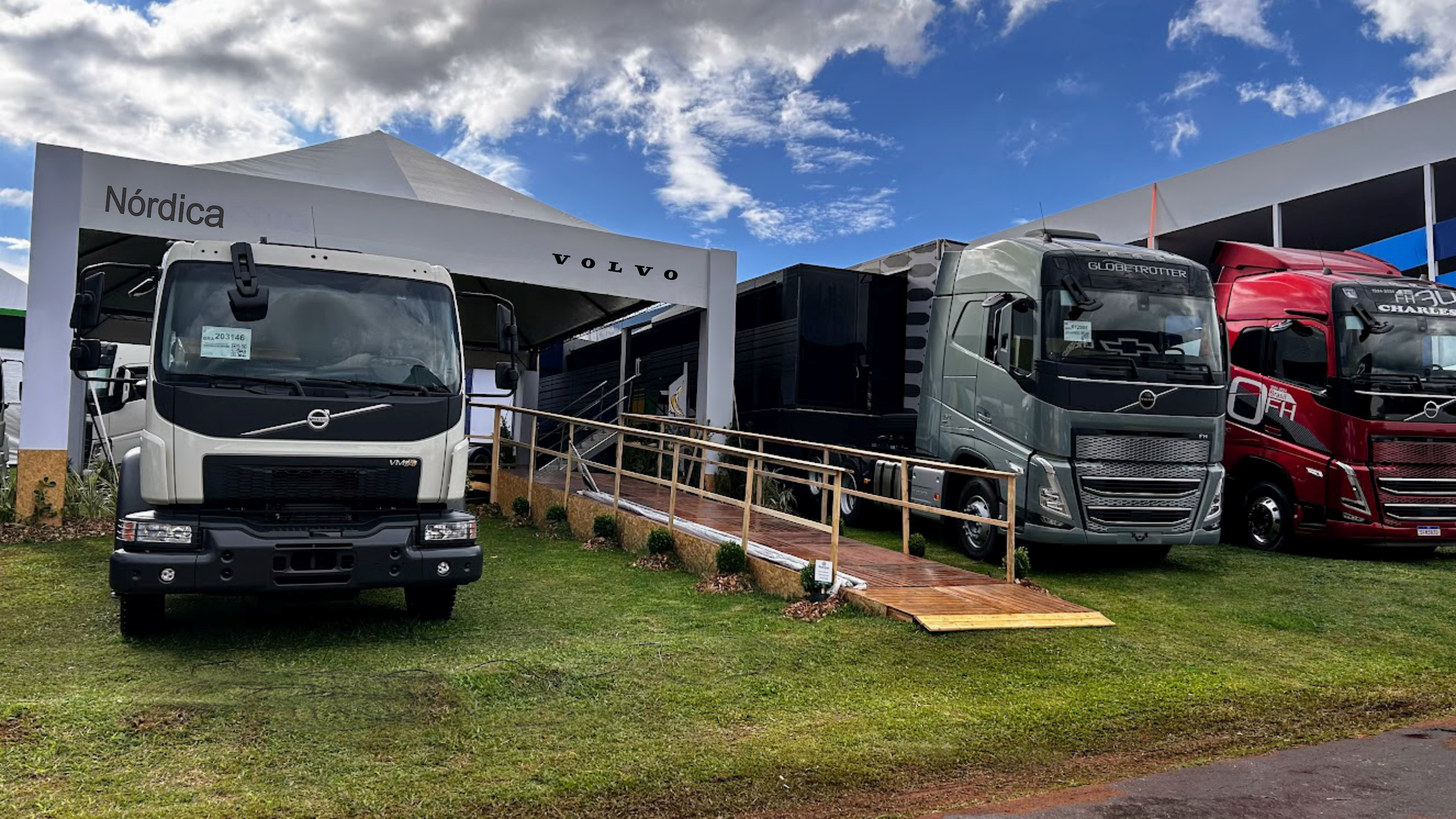 O estande da marca conta com a parceria da Nórdica, concessionária Volvo da região. os veículos têm ampla aplicação no segmento agrícola.